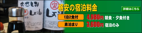 熊本市のビジネス旅館、民宿「月華荘」では、一期一会をモットーに心休まるひとときをお過ごし頂ける様、温かいおもてなしを心がけております。熊本の農家より直接取り寄せた美味しいお米、歴史のある醤油蔵から生まれた、厳選醤油をはじめ、こだわりの調味料を使用。 |